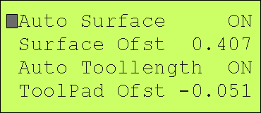 This menu allows you to change the other tool parameters. The SPINDLE