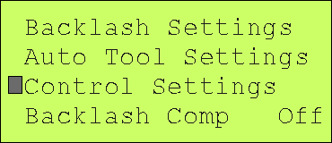 initial backlash settings, baud rate etc.